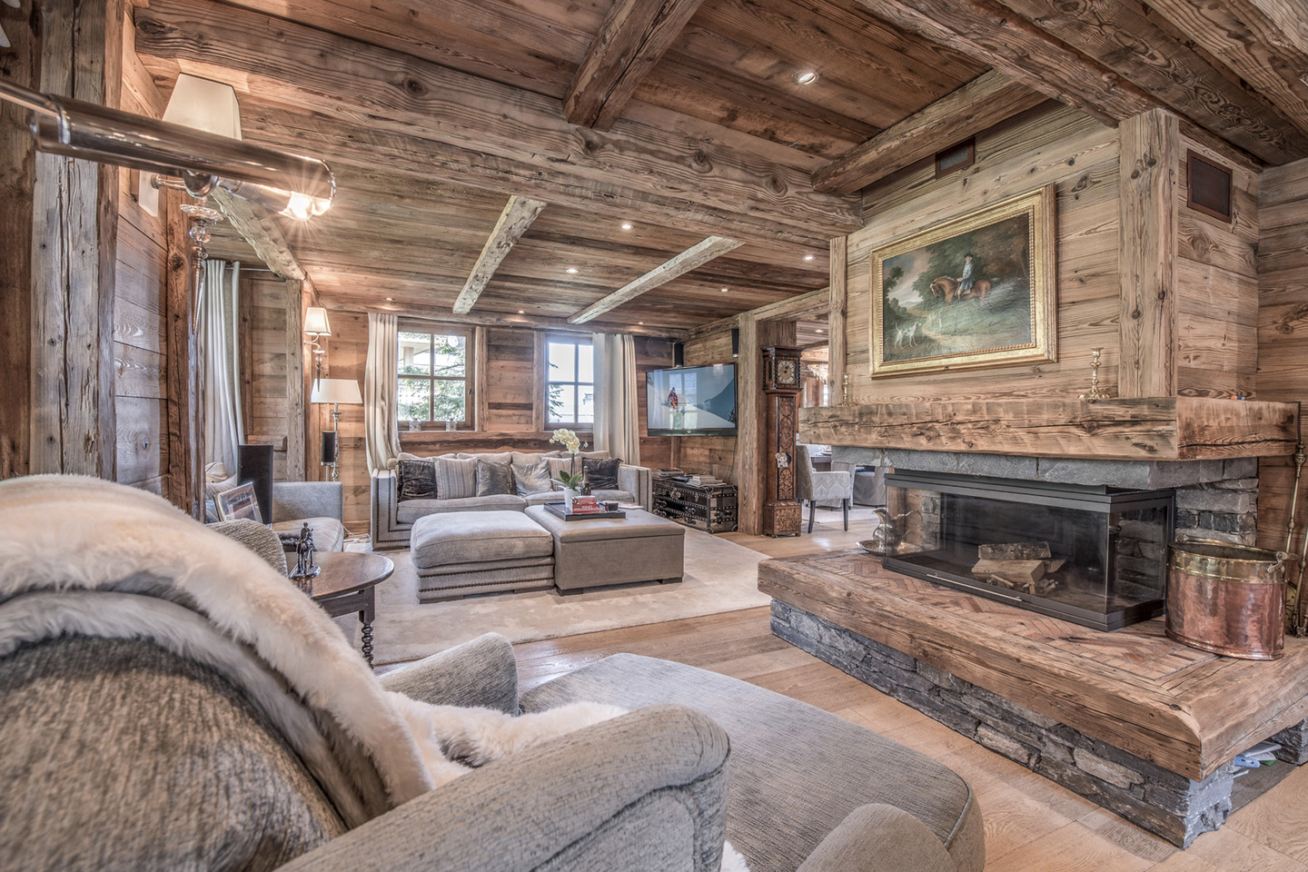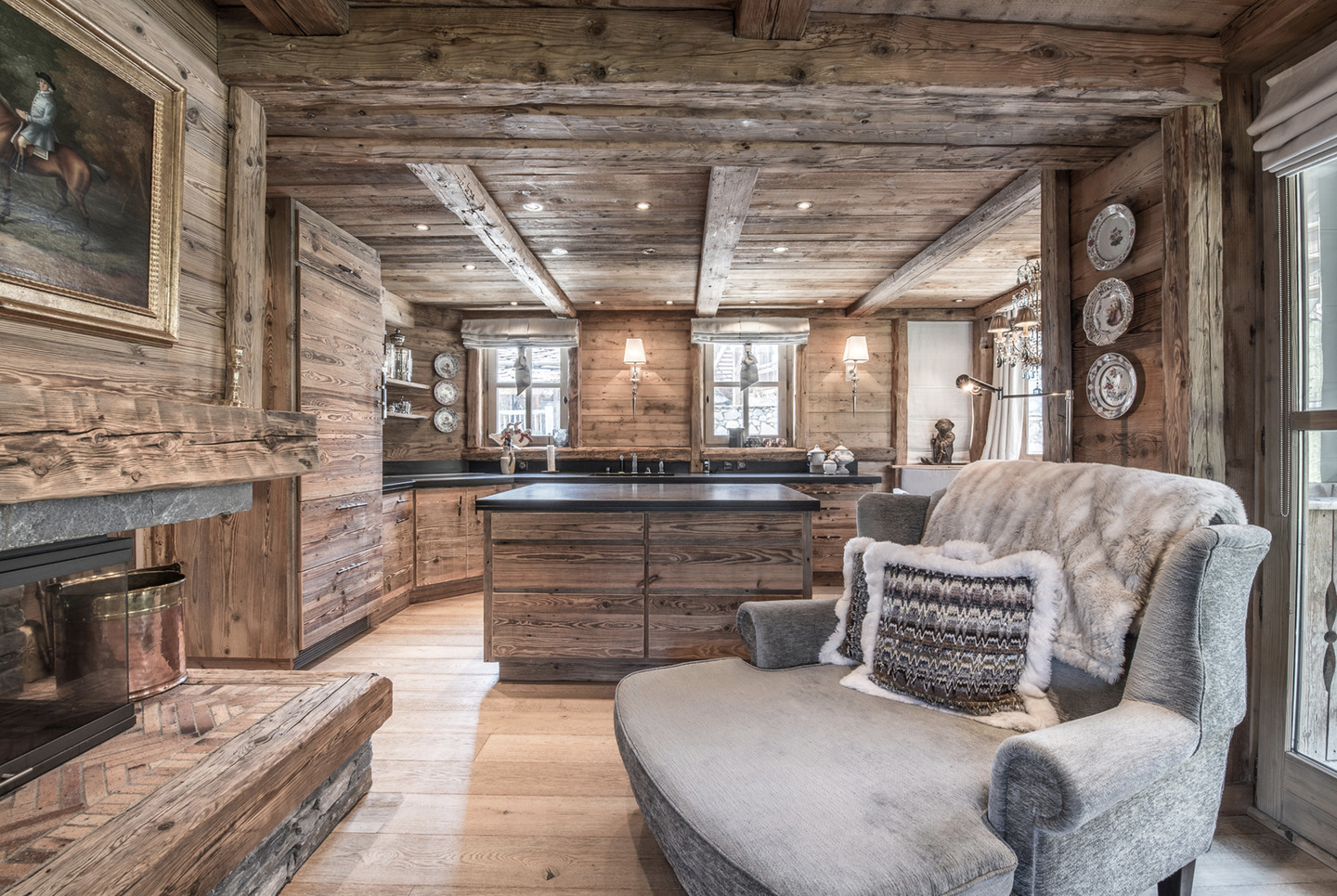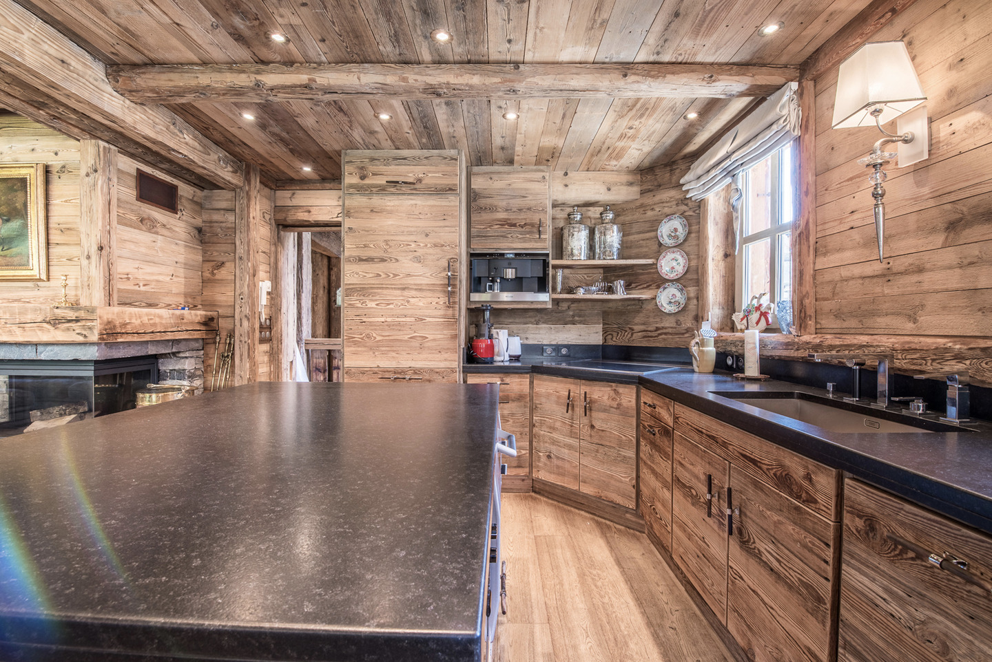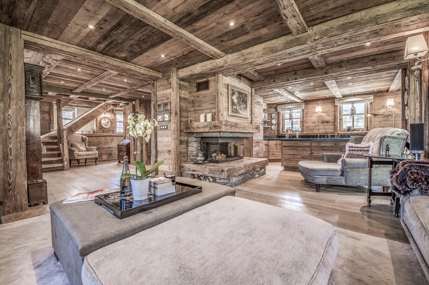 The chalet's design perfectly blends traditional mountain materials with high-end contemporary equipment and a charming antique touch, creating a warm and sophisticated atmosphere.