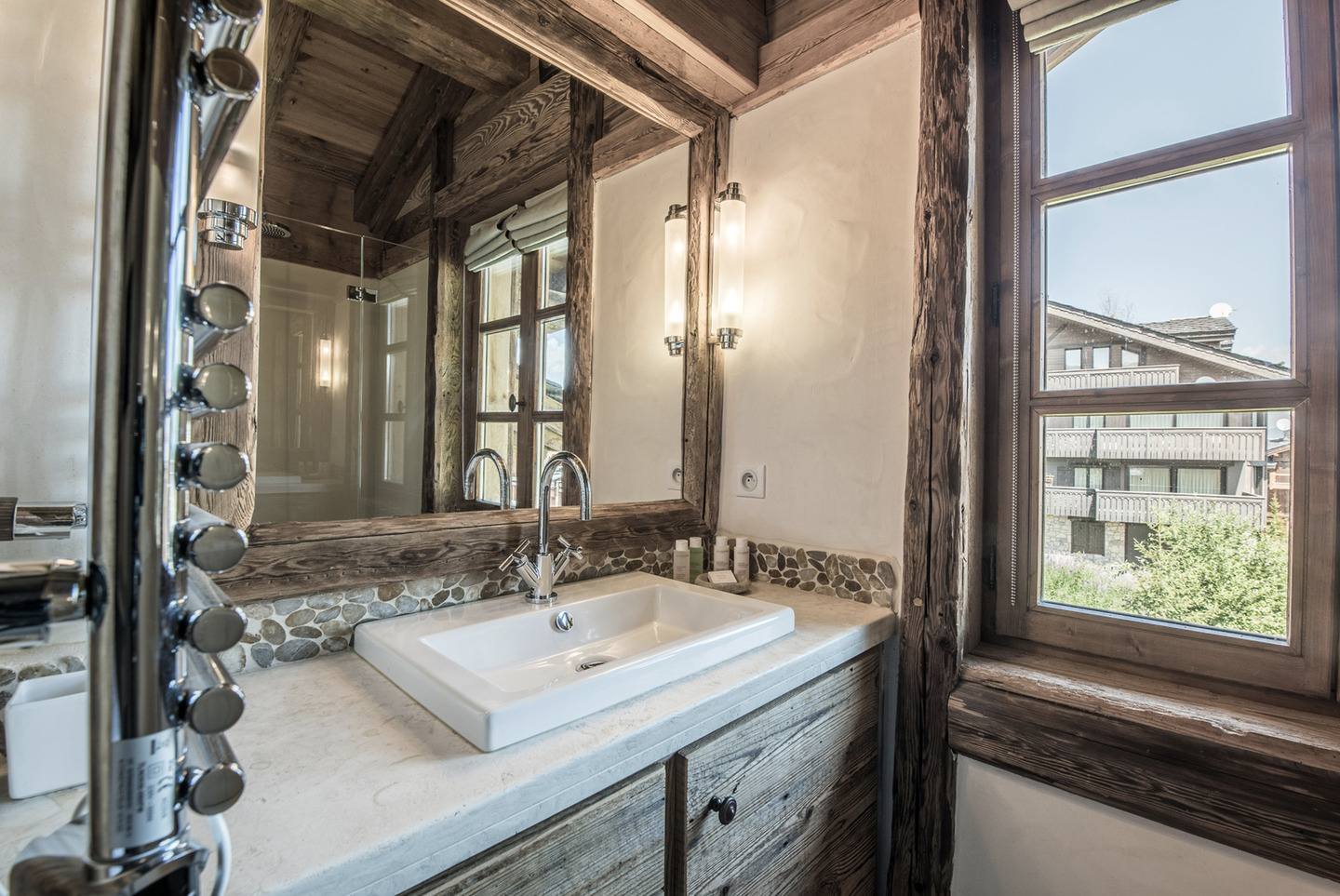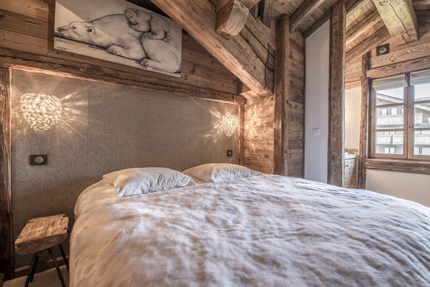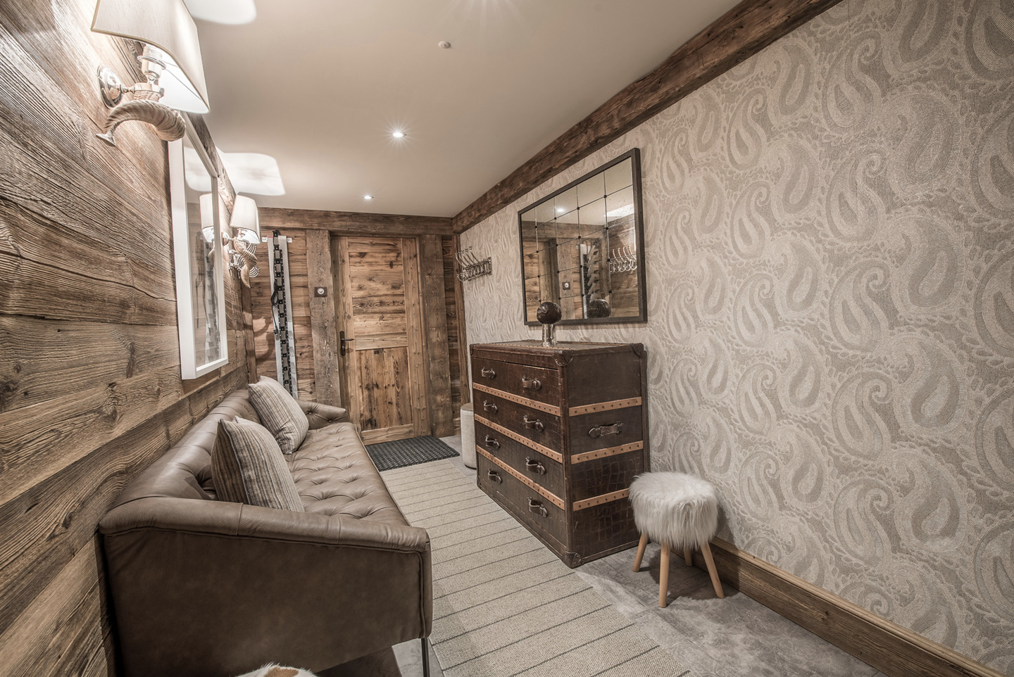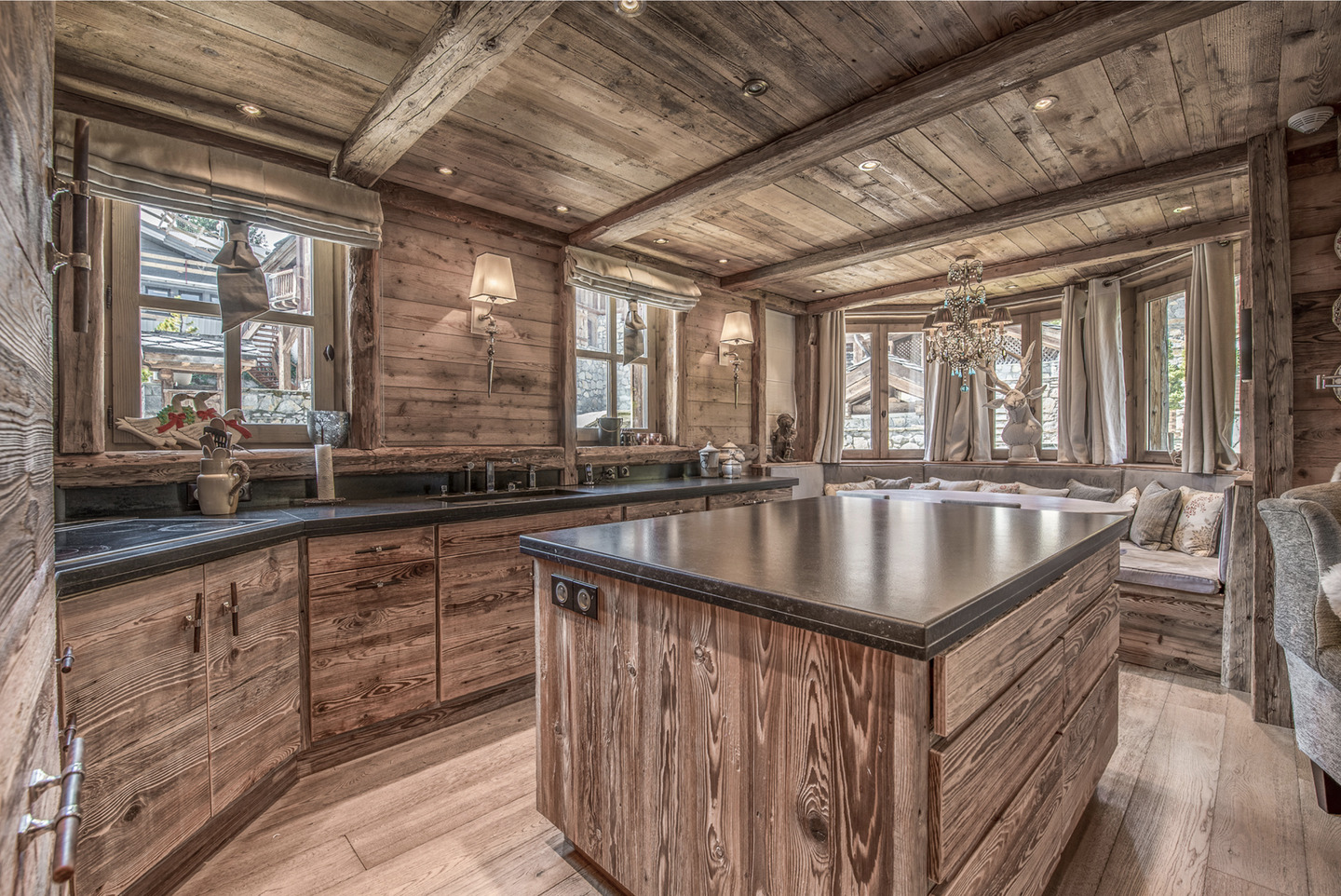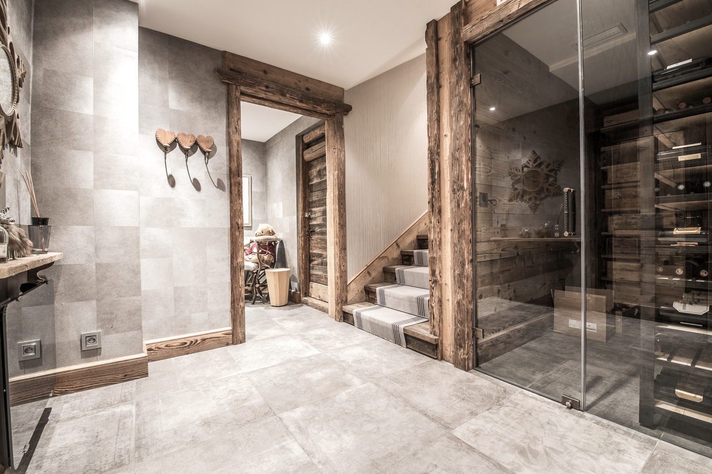 The chalet's design perfectly blends traditional mountain materials with high-end contemporary equipment and a charming antique touch, creating a warm and sophisticated atmosphere.