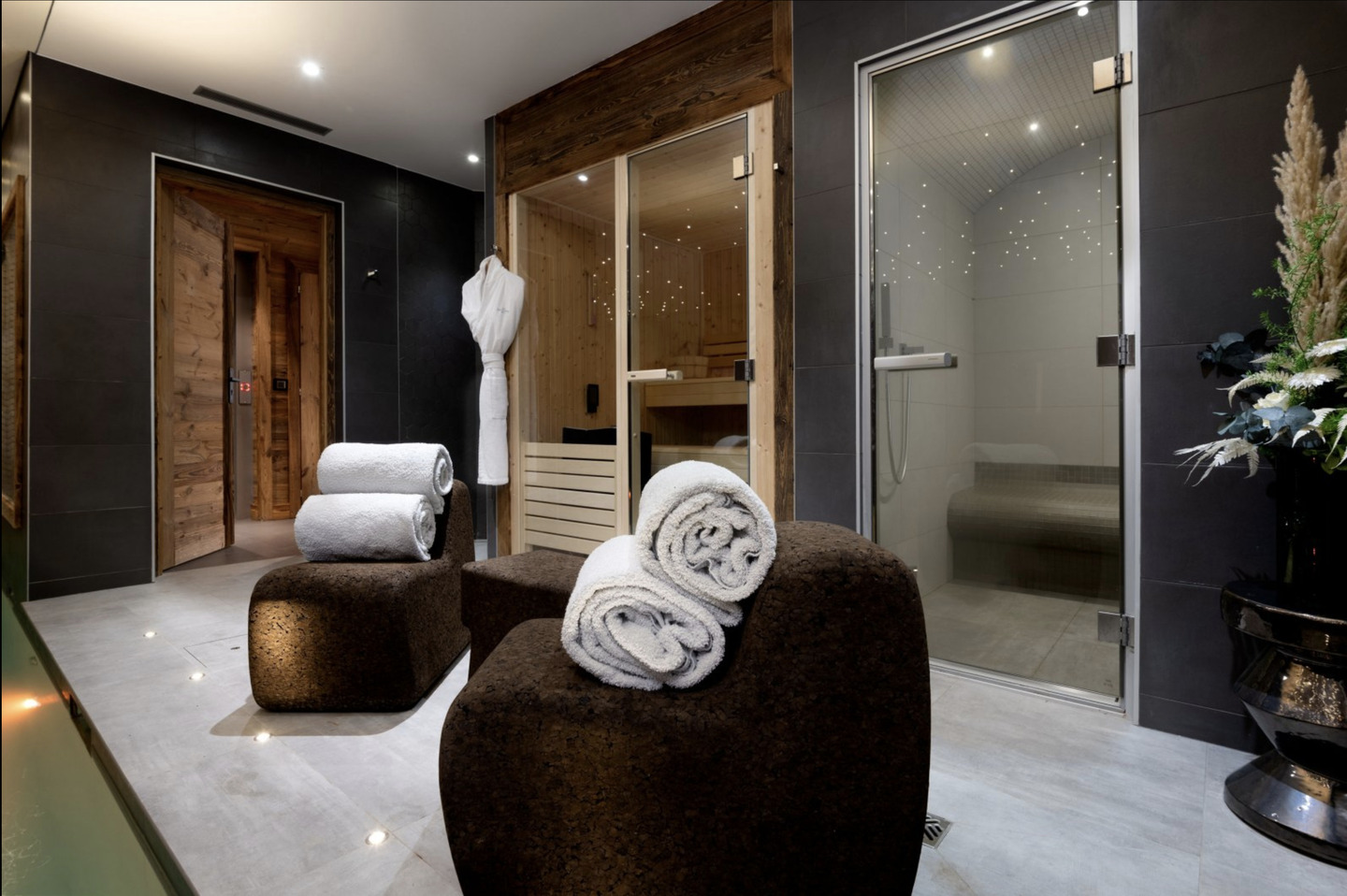 Compuesta por 6 habitaciones en suite, la propiedad destaca por su magnífica zona de relajación. Aquí apreciará especialmente el sauna, el hammam, el jacuzzi exterior y la impresionante piscina interior (8m x 4m) con un techo que simula un cielo estrellado. Un refugio perfecto para relajarse después de un espléndido día en las soleadas laderas de Moriond.