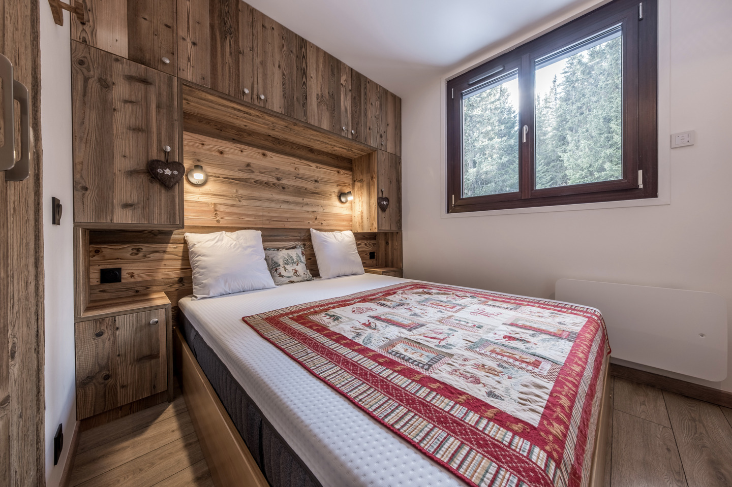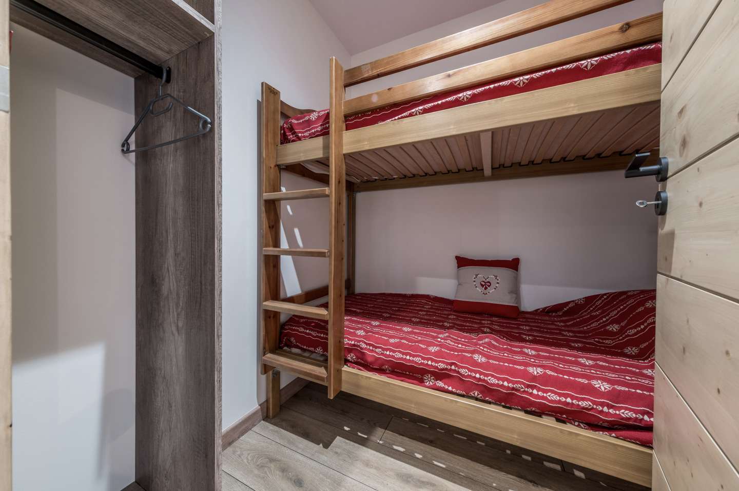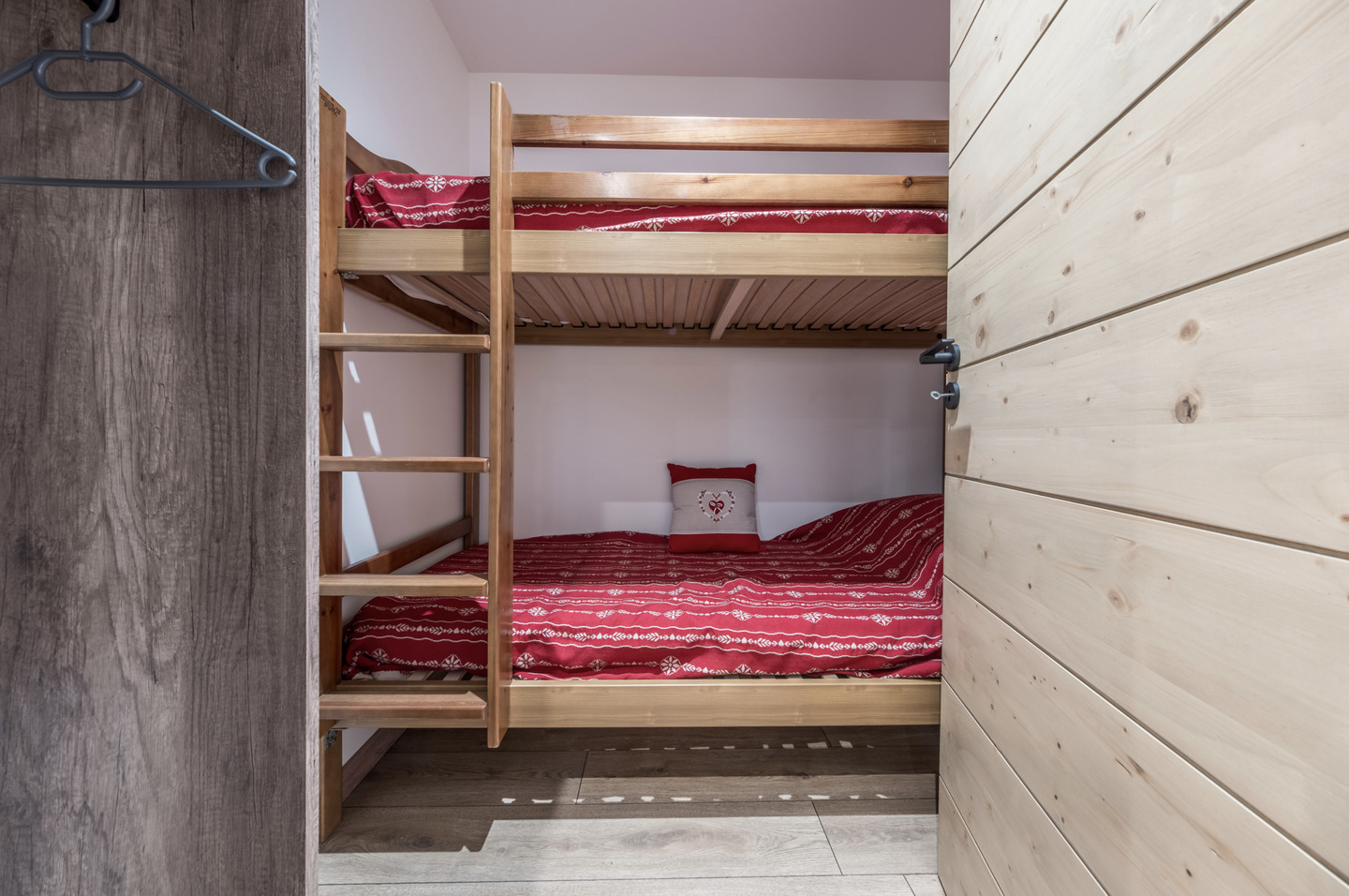 • Bedrooms: A master bedroom with a queen-size bed and balcony, plus a cosy cabin room with bunk beds.