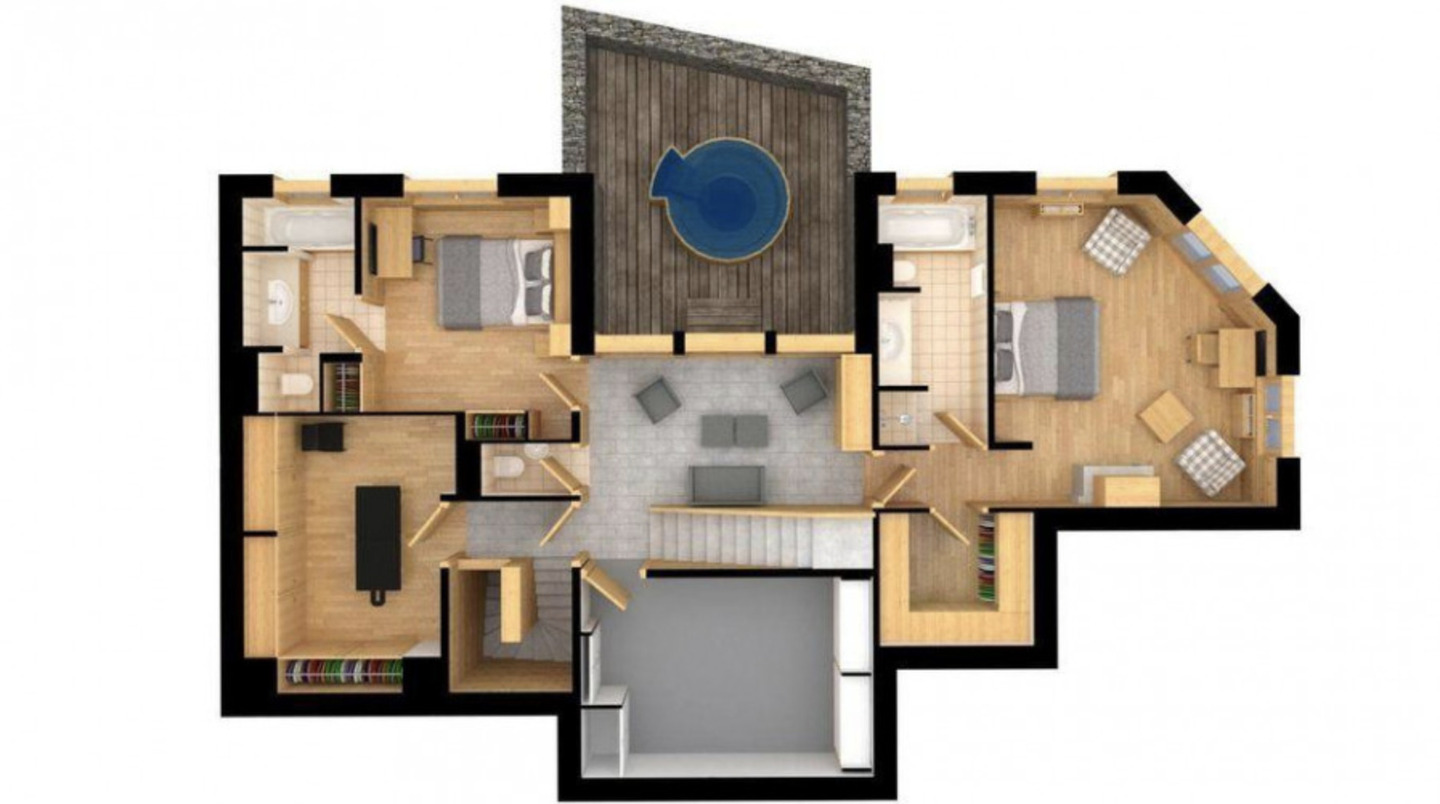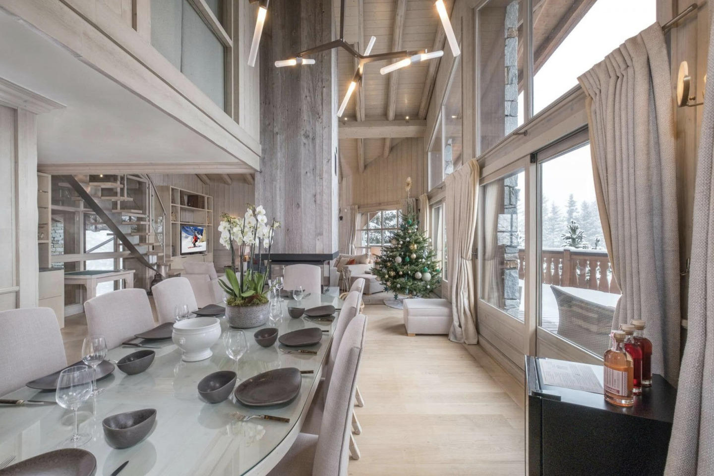 Distribución y Capacidad Con capacidad para 10 personas, el chalet ofrece 5 dormitorios (incluyendo una Master Suite de lujo) con baños en suite, vestidores y terrazas privadas. Es la elección perfecta para familias exigentes que buscan lujo y privacidad en la mejor ubicación de Courchevel.
