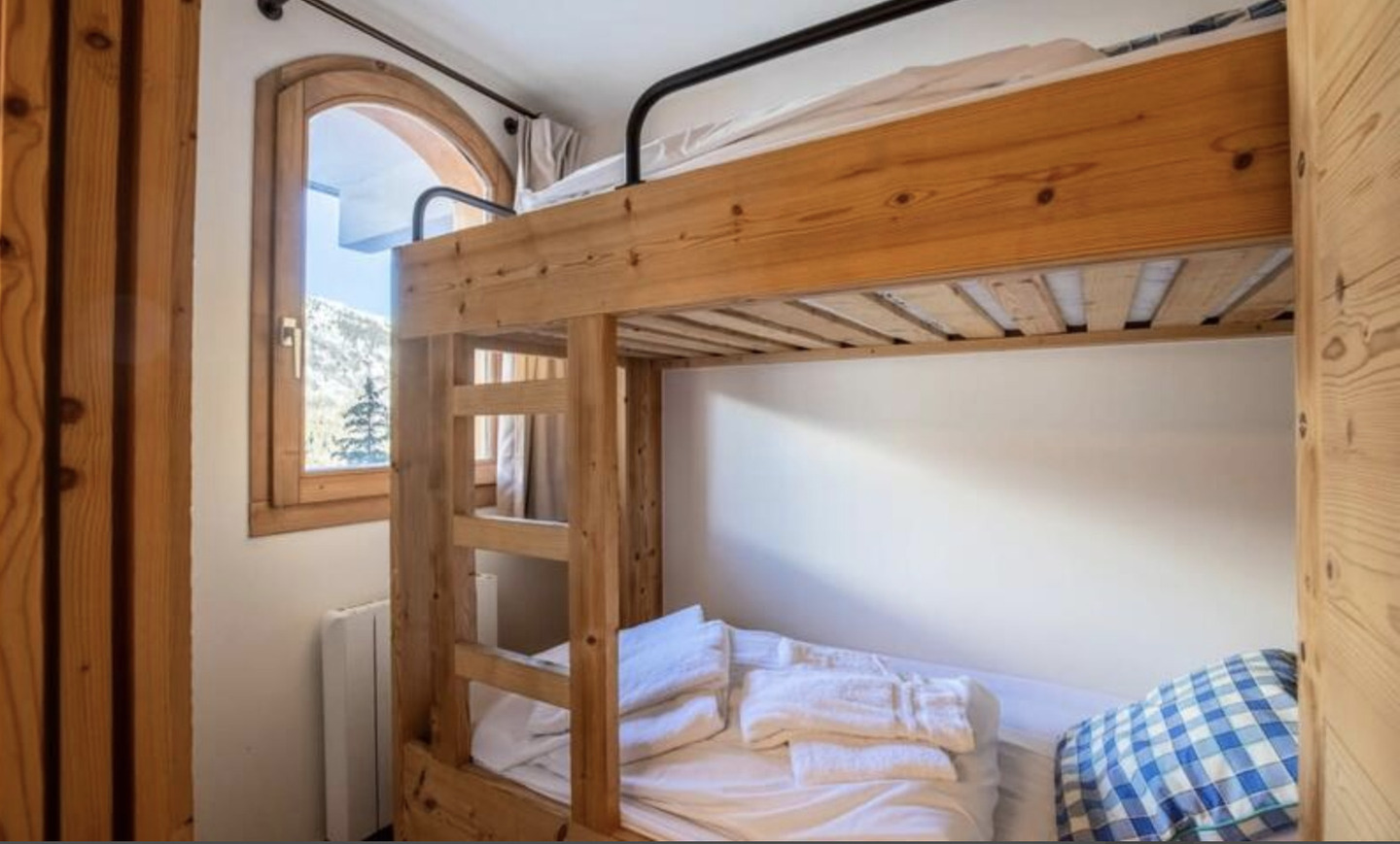 Chambres : Deux chambres confortables, l'une avec un lit double et l'autre avec des lits superposés.