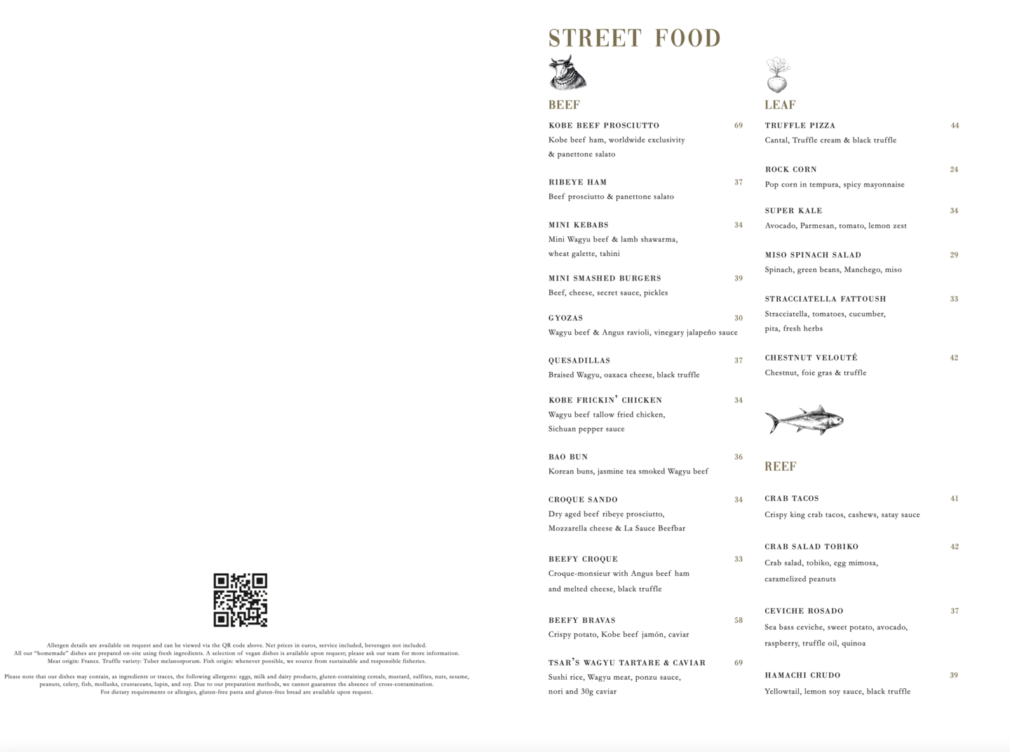 La carte met à l'honneur des viandes d'exception telles que le Bœuf de Kobe, le Black Angus et le Wagyu, sublimées par des cuissons millimétrées. Les plats sont accompagnés de la célèbre purée de pommes de terre maison et de sauces signatures. Ne manquez pas le Croque Sando croustillant, les pappardelles au Wagyu ou la sélection élégante de street food comme les Mini Smashed Burgers. Plus qu'un repas, c'est une expérience de partage et de convivialité.