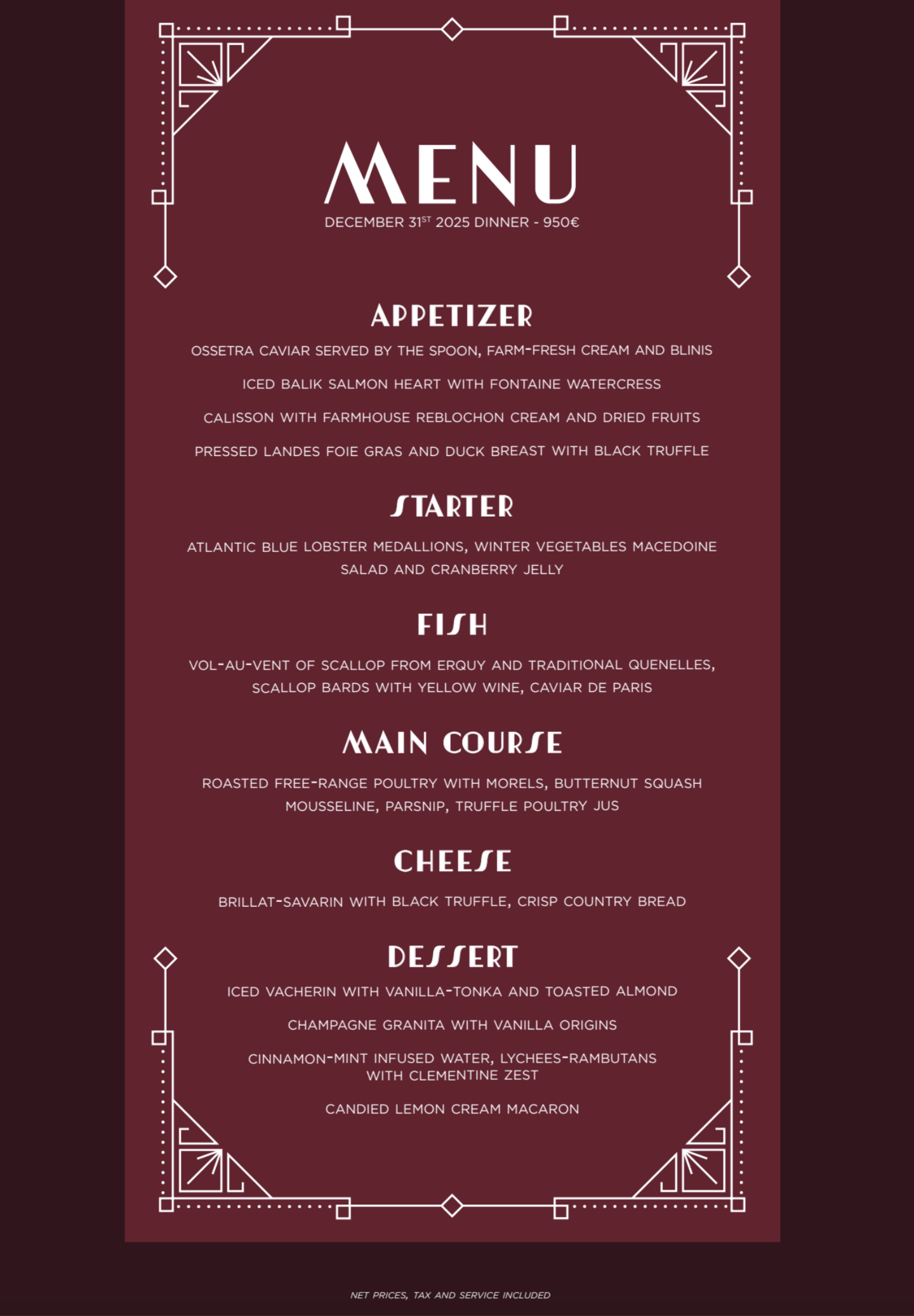 *For any reservation through our concierge service, the fee is 128,26 €. This fee is not refundable and not changeable for another date, and no way constitutes a prepayment on the invoice of our partners.