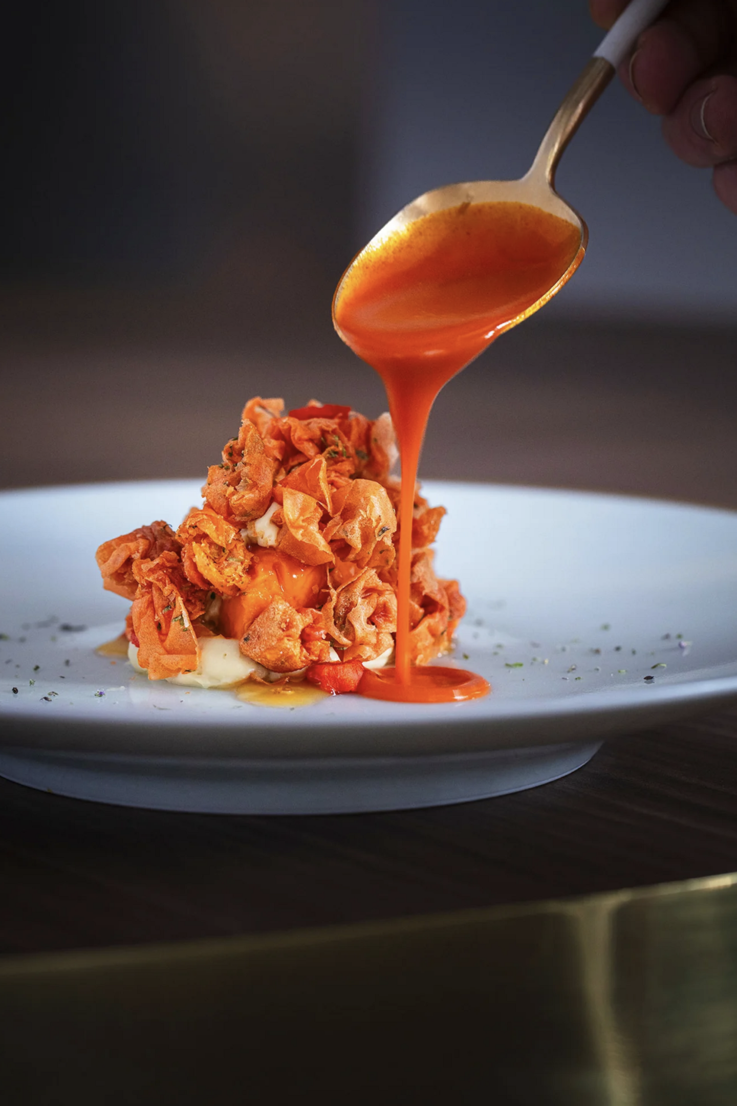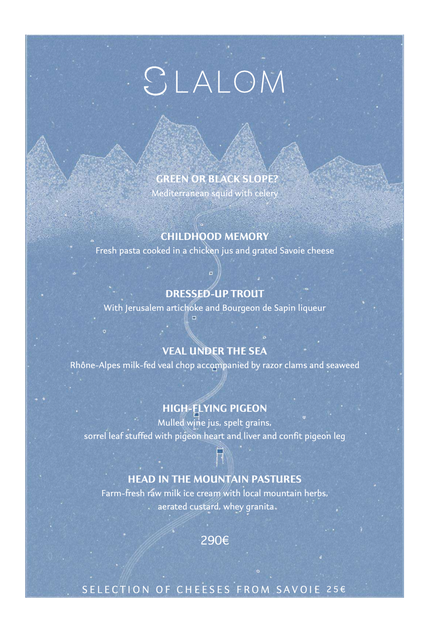 Inspired by the Mediterranean with a hint of mountain influence, the menu of the Baumanière 1850 restaurant, which has one Michelin star, shows its colours. Comfortable armchairs, incredible ceilings where the details of a famous painting from the Château de Versailles have been reproduced... the Baumanière 1850 restaurant is undeniably a world apart in the heart of the Strato. Thomas Prod'homme, sponsored by Jean-André Charial, chef and owner of the mythical Provencal restaurant L'Oustau de Baumanière, three stars in the Michelin guide, has taken the helm. Together with his team, he has created a menu that honours the flavours of authentic cuisine concocted with the finest products from the region.