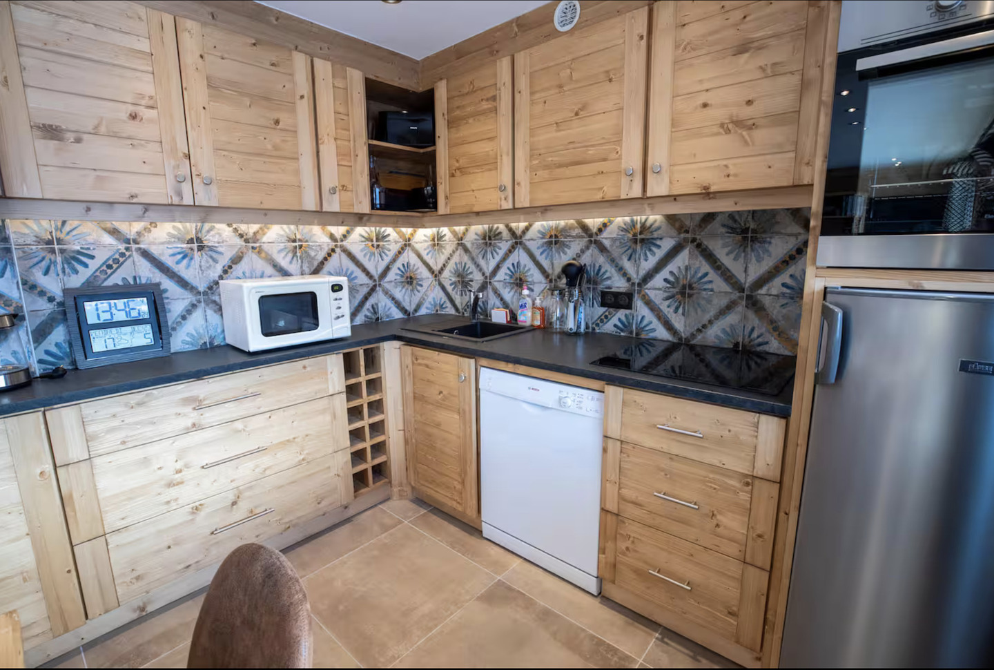 • Кухня: Полностью оборудована посудомоечной машиной, тостером, чайником, кофемашиной, а также наборами для раклета и фондю.